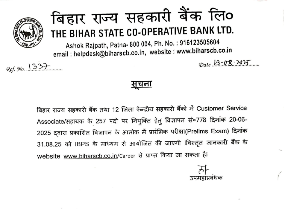 | Organization Name | Bihar State Co-operative Bank Ltd. (BSCB) |