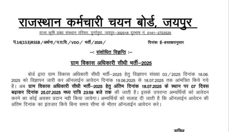The last date to submit the application form was 25 July 2025. Applicants can view their score card using their Enrollment Number / Registration Number / Date of Birth by logging into the RSSB portal. The direct download link is available below.